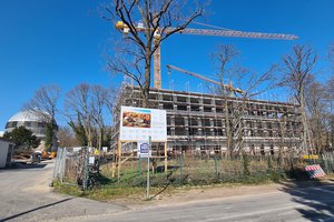 Baustelle von der Straße "An der Sternwarte", mit Baustellenschild, März 2022