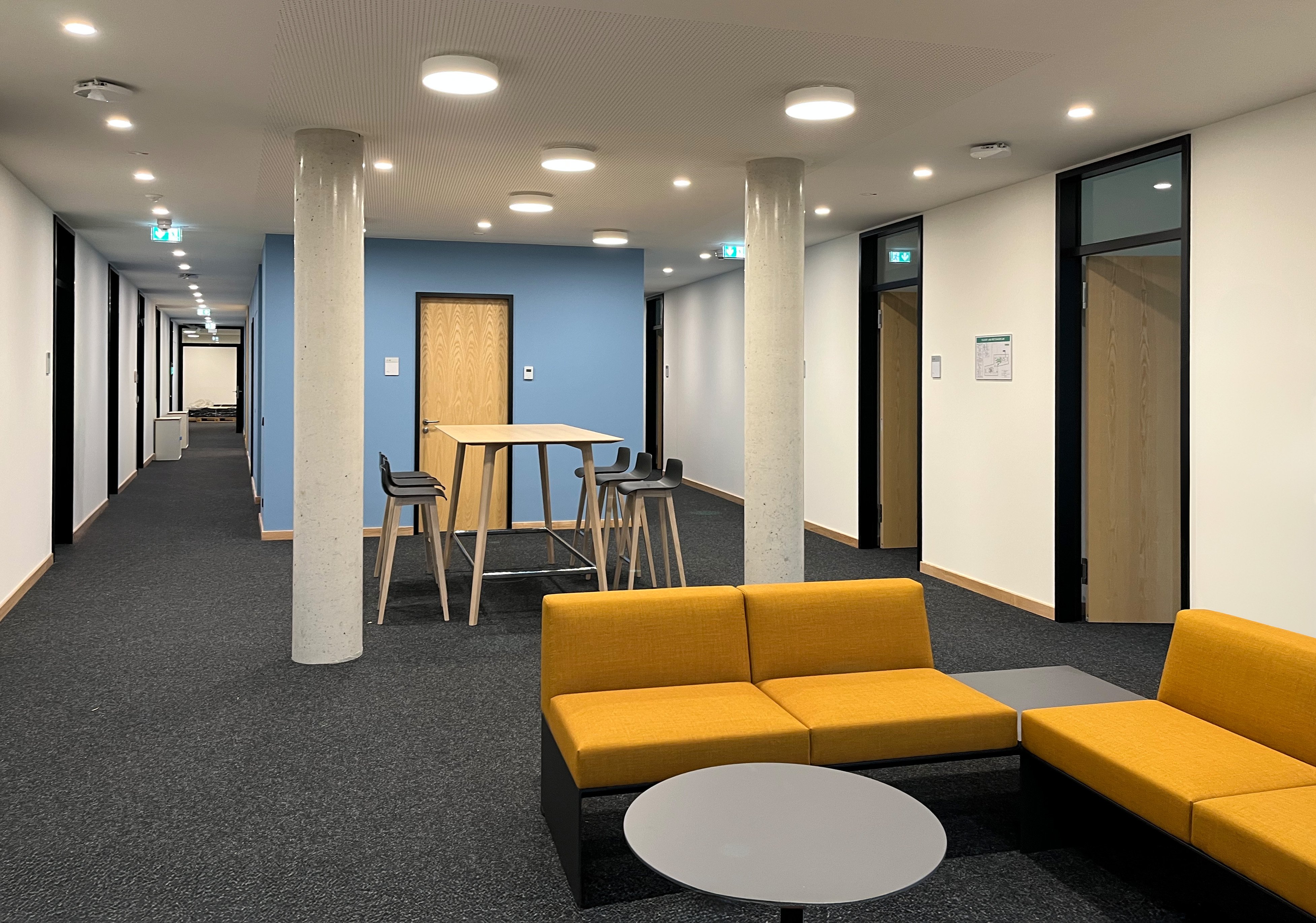Das neue Gebäude bietet 100 Büros, einen großen Konferenzraum, mehrere kleinere Besprechungsräume sowie eine neue Cafeteria. Dort betreibt Freundlich Catering seit 4. März 2025 das Astro⭐Bistro, in dem auch externe Gäste sehr willkommen sind. Im großzügigen Eingangs-Foyer sind 25 Steindrucktafeln zu sehen, die "Charte der Gebirge des Mondes" von J. F. Julius Schmidt. Damit wurden 1878 die damals genaueste Karten des Mondes gedruckt. Der Konferenzraum für knapp 200 Gäste ist mit modernster Technik ausgestattet und war bereits Veranstaltungsort von internen und externen Workshops und Seminaren. Die wöchentlichen Kolloquien, wissenschaftliche Vorträge zu verschiedenen Themen der Astrophysik, finden ebenfalls hier statt.