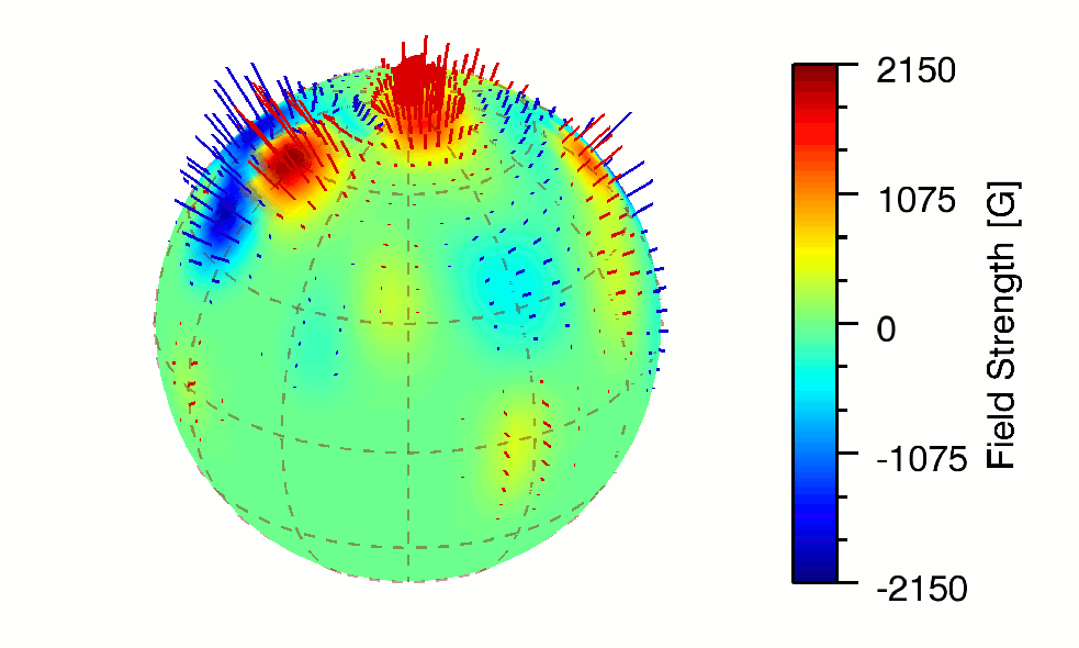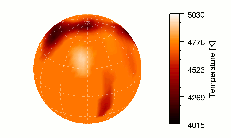 Gif-Animation zur Darstellung des Zeeman-Doppler-Imaging von II Pegasi.
