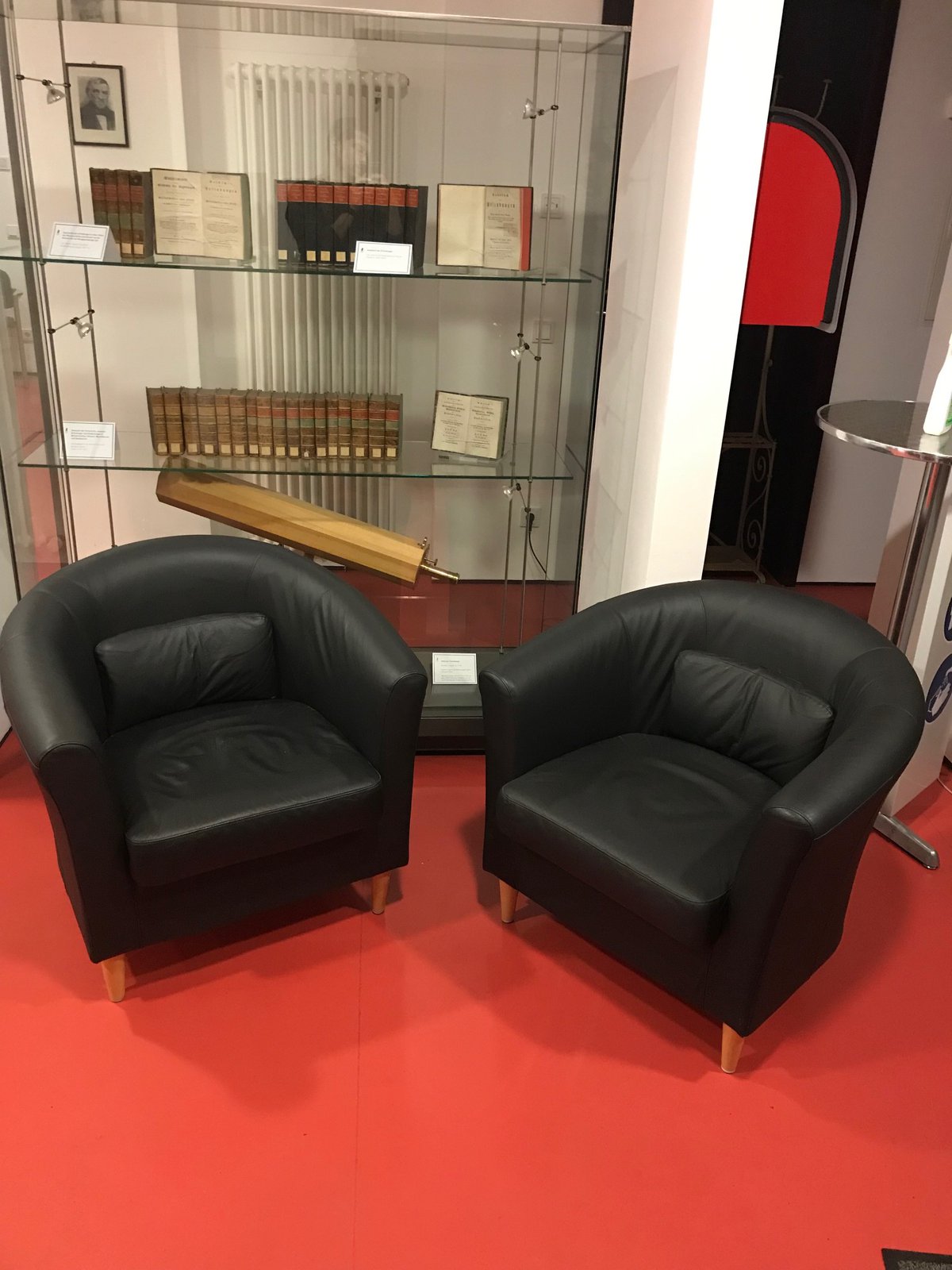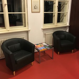 In the entrance area of the library you have the possibility to meet with colleagues on our comfortable armchairs or to study the current daily press.
