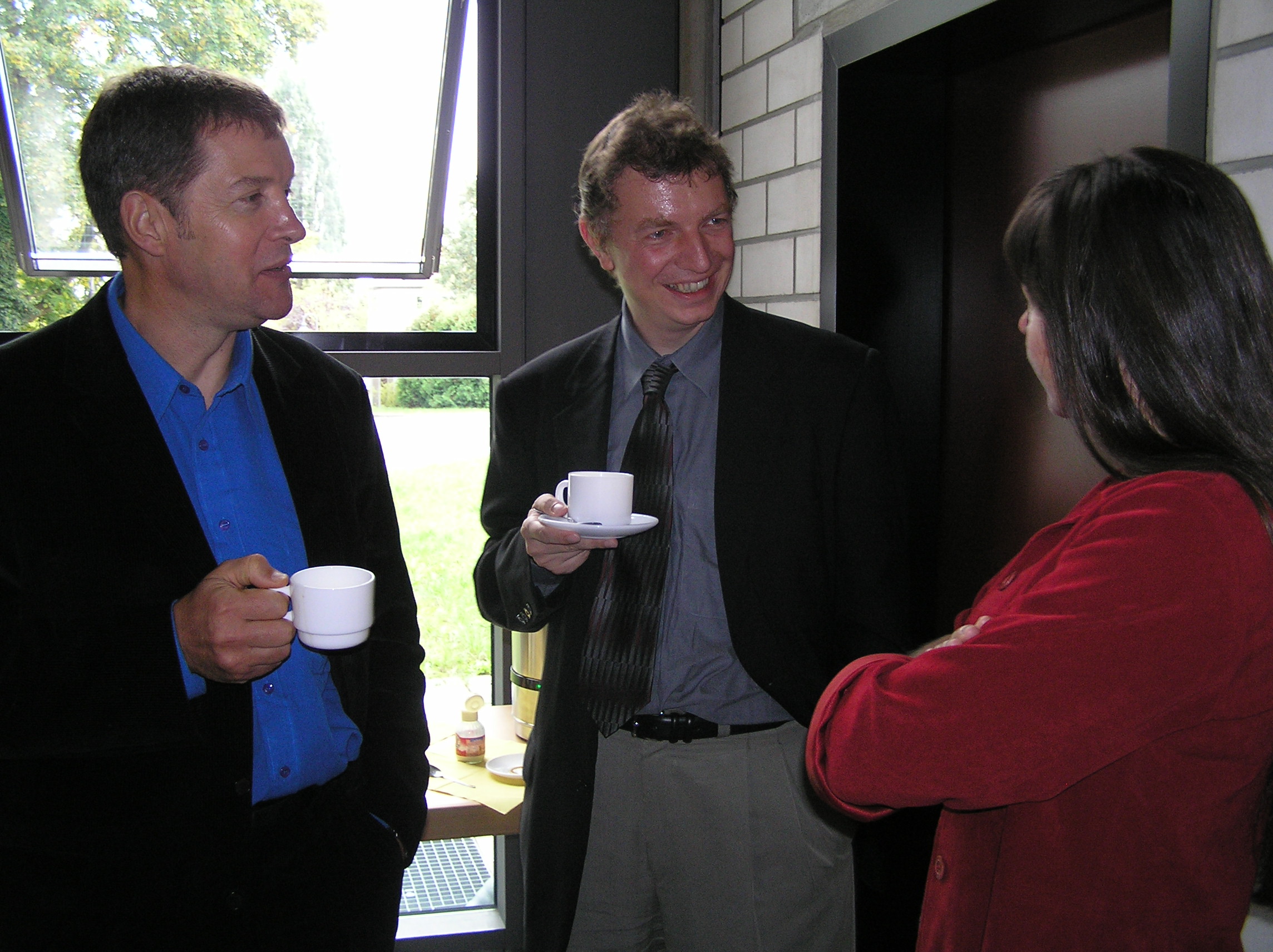 Verleihung des Johann-Wempe-Preises des AIP 2004 an Isabelle Baraffe (Mitte) und Gilles Chabrier (links) durch die Kuratoriumsvorsitzende Konstanze Pistor (rechts).