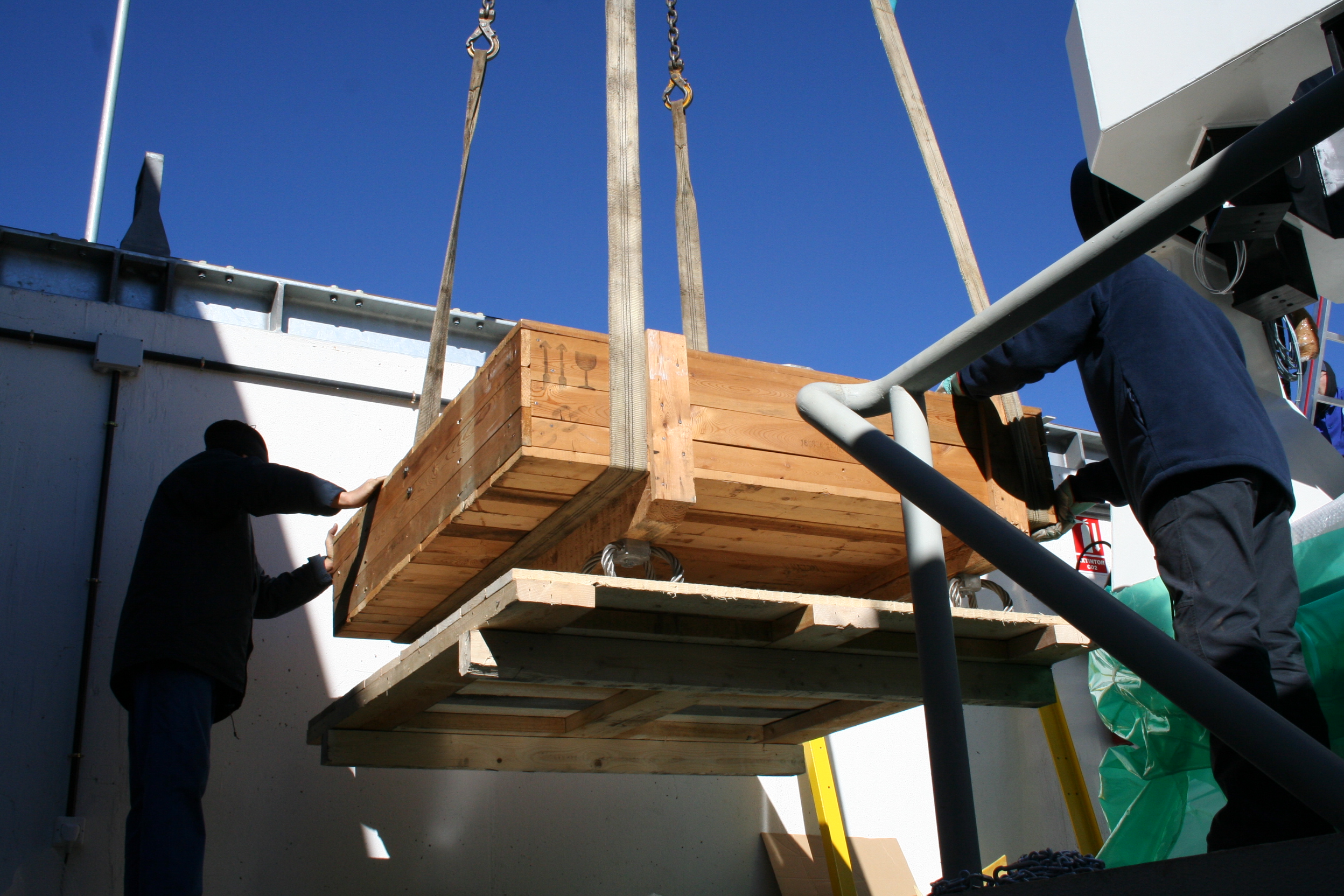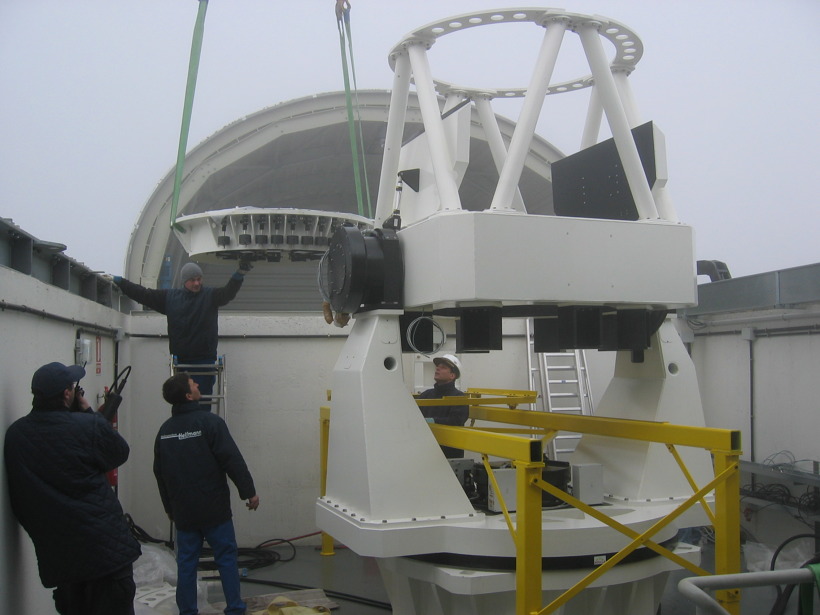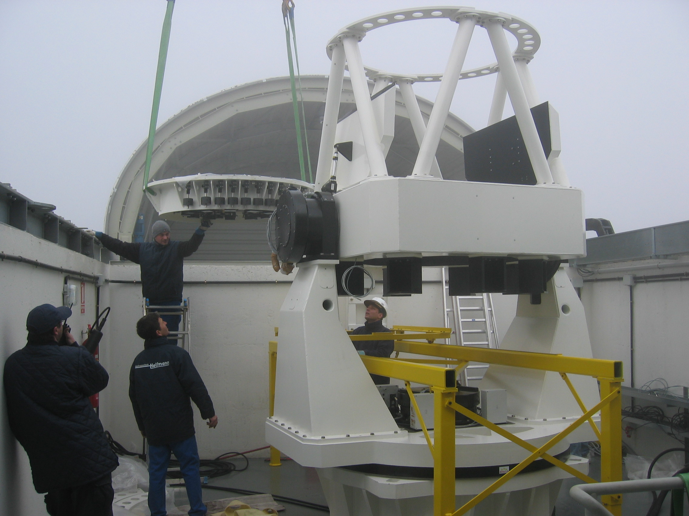 Installation of STELLA II, the second telescope of the robotic STELLA observatory on Tenerife, Canary Islands. December 13, 2005.