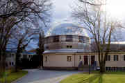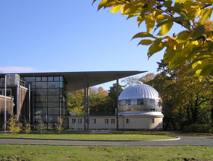 Bibliotheksgebäude auf dem Gelände der Sternwarte Babelsberg. Bis 1945 beherbergte die Vorgängerkuppel ein 122-cm-Spiegelteleskop.