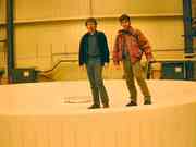 in March 2001. Walking on the curved mirror: Jesper Storm (left) and Frank Dionies (right).